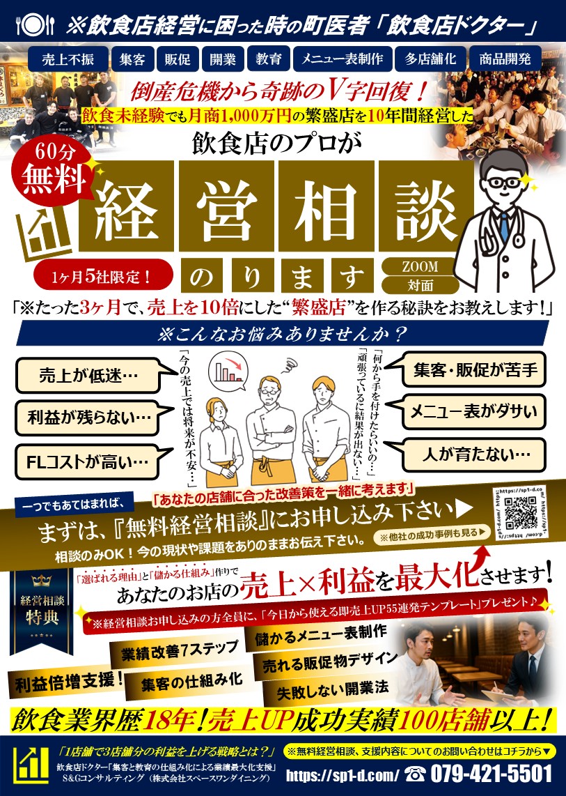 今より売上をアップし、利益を倍増させたい飲食店オーナー様必見!