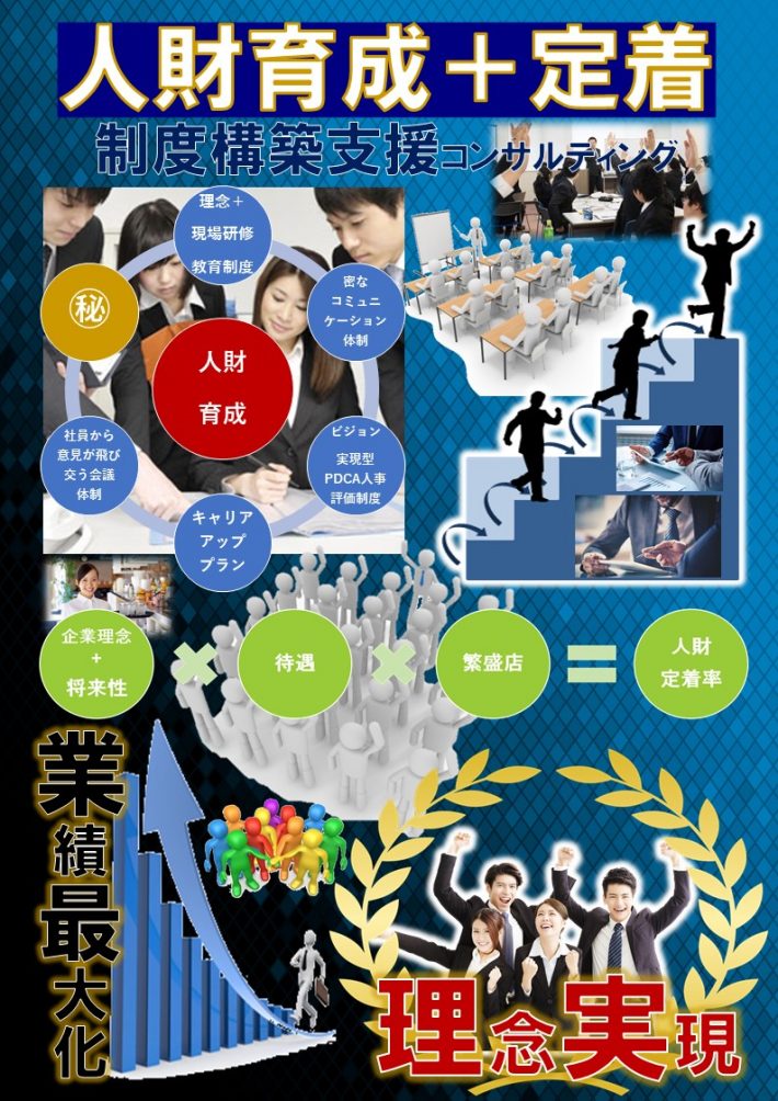 会社の理念と社長の夢を実現させる中期経営計画作成・会社が望む人財が採用できる社内人事部構築・業績を最大化させる従業員即戦力化・定着化支援・売れる販促物作成・社長がいなくても運営出来る仕組み化支援・会社の想いが伝わり従業員をやる気にさせ、売上に連動する人事評価制度作成…etc