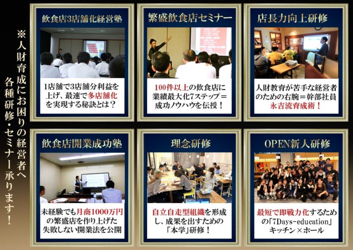 『飲食店の経営者向けセミナーから店長・新人研修まで様々テーマで開催可能です!』